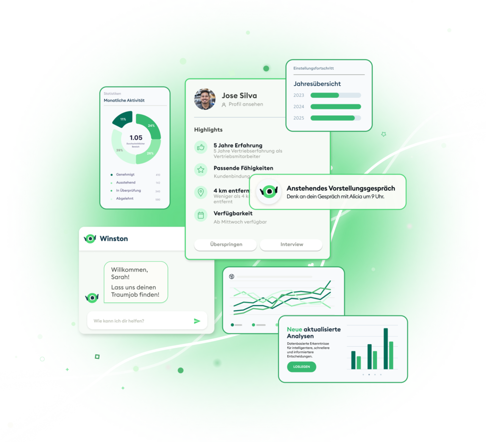 Vom AI Intelligence Layer, powered by Winston, über das zentrale Talent-Betriebssystem SmartOS bis hin zu den Add-on-Modulen mit wertvollen Upgrades – Ihr Team wird befähigt, die richtigen Talente zur richtigen Zeit zu finden, auszuwählen und einzustellen.